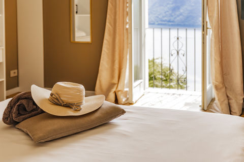 Casa Clementina welcomes you in a lovely living/dining room with a fully equipped kitchen. A glass door leads you to the wonderful lakefront door window. A wooden door leads you to the elegant double bedroom in warm earth tones with its lakefront door window. Two wooden doors lead you to the large bathroom with massage chairs and a separate room with toilet.